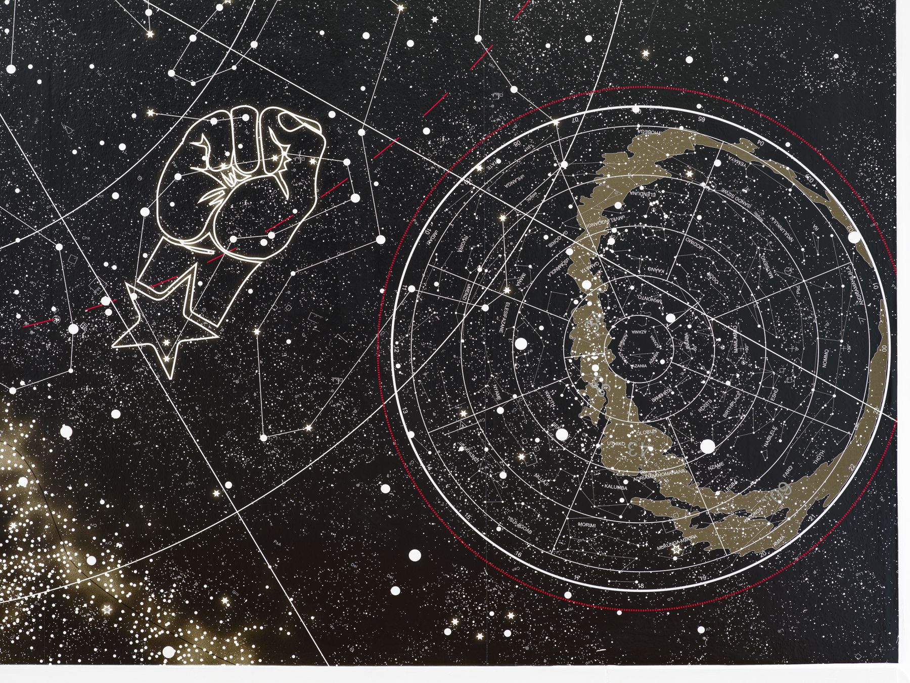 2015 gründeten Nolan Oswald Dennis, Tabita Rezaire und Bogosi Sekhukhuni in Johannesburg NTU als „eine Agentur, die sich mit der spirituellen Zukunft der Technologie beschäftigt“. 5 In dieser Ausstellung sind gemeinsame Arbeiten von NTU und Einzelpräsentationen der Künstler:innen zu sehen.